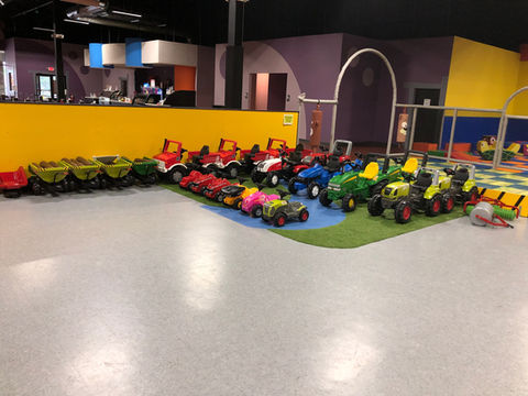 Our Tractor Riding Area is a one of a kind space where kids can pedal, pretend, and explore. Designed for imaginative active play, this area features a pretend play gas station, police station, and fire station where little ones can create their own adventures as they ride around. Kids can pedal tractors, connect and swap trailers and tanks, and enjoy hands on fun that keeps them moving. We also offer smaller ride on vehicles without pedals so younger children can push themselves along at their own pace. Maximum rider weight for pedal tractors is 80 pounds. Best for ages 2 to 12.